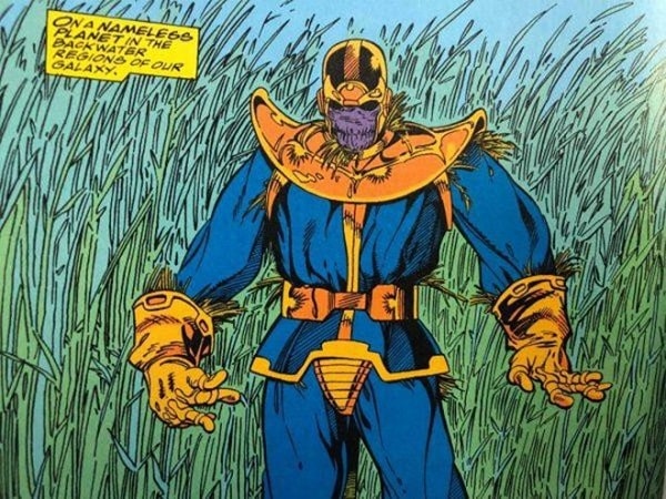 Có lẽ đây là chi tiết bám sát comic nhất trong Endgame. Sau khi hoàn thành lý tưởng xóa sổ 1 nửa vũ trụ của mình, Thanos đã quyết định "nghỉ hưu" ở một hành tinh xa xôi và trở thành một người nông dân "thiện lành". Gã Titan điên dùng bộ giáp cũ làm con bù nhìn. Những chi tiết này đã được các nhà làm phim bê nguyên từ cốt truyện gốc vào. Tất nhiên, trong truyện không có cảnh Thor chặt đứt đầu Thanos rồi.