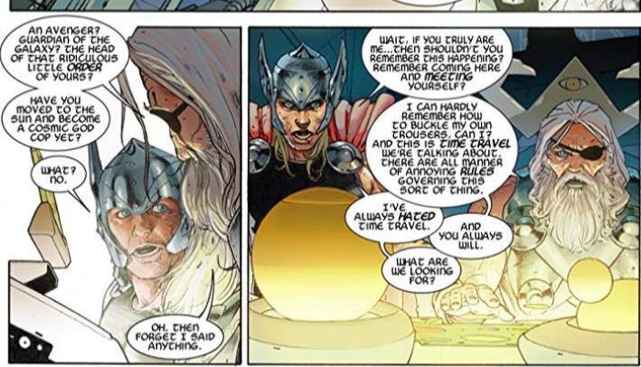 Lúc này, Thor quay trở lại Trái Đất để thăm những người đồng đội cũ nhưng lại bị tên tà thần Grog tấn công bất ngờ. Chiếc búa trên tay anh lúc này cũng bị văng ra do chịu sự đánh đập liên tiếp từ mấy tên tay sai của Grog. Captain America đã nhanh chóng nắm lấy Mjolnir rồi quăng lại cho Thor để "lật kèo".